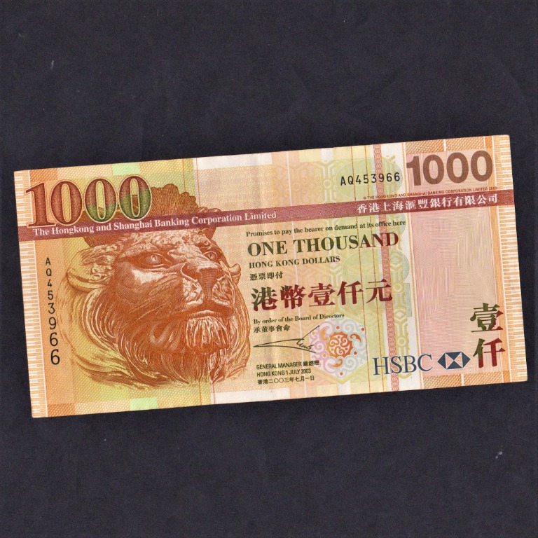 Hsbc 2003 1 000dollars Hong Kong Duit Lama Aq 453966 Ef Hobbies Toys Collectibles Memorabilia Currency On Carousell